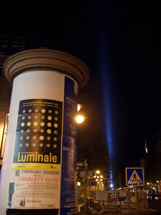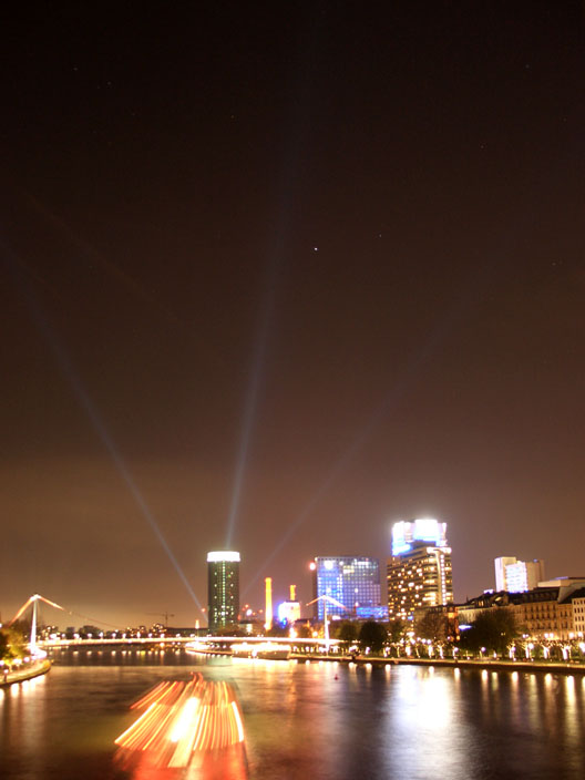 Vorweihnachtliches Lichtspektakel in BrüsselEigentlich ging es bei dem Besuch am 16. Dezember in Brüssel darum, etwas gegen Lichtverschmutzung zu tun. Am Grand Place und dem Brüsseler Rathaus wurde jedoch gezeigt, wie man viel Energie in den Himmel verpulvern kann ... Lichtverschmutzung im ZDFAm 3.12. berichtete das ZDF in seiner Sendung Sonntags über Lichtverschmutzung, der Beitrag kann unter www.zdf.de/ZDFde/inhalt/19/0,1872,4084499,00.html angeschaut werden. November 2006Lichtverschmutzung Thema in ParisIm Rahmen der "Rencontres du ciel et de l'espace" vom 10.-12 November in La Vilette/Paris wurden an zwei halben Tagen auch Vorträge zum Thema Lichtverschmutzung gehalten: www.cieletespace.fr/RCE/default.aspx LichtverschmutzungskartenFrederic Tapissier aus Frankreich hat eine Lichtverschmutzungskarte von Deutschland erstellt. Allerdings ist nicht das Licht direkt erfasst, er hat in einer Kartensoftware Siedlungen und Gewerbegebieten eine bestimmte Helligkeit zugeordnet, verschmiert, mit Höhendaten kombiniert und dann zusammengestellt. September 2006Umweltnacht in Stuttgart Planetarium und Umweltamt der Stadt Stuttgart haben die Stuttgarter Umwelttage (29.9-12.10.2006) unter das Motto "Die Nacht erleben" gestellt. In der Umweltnacht am 29.9. ging es im Planetarium in mehreren Vorträgen um die Lichtverschmutzung.