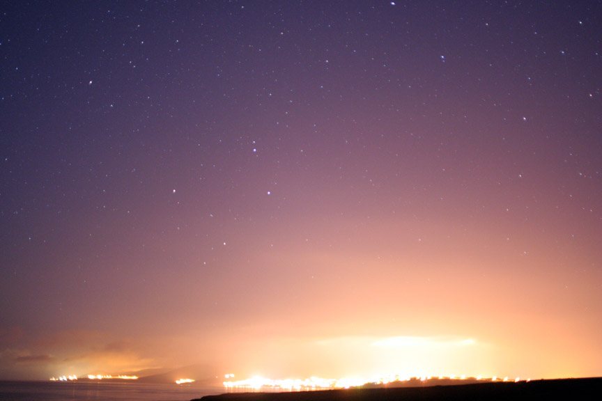 Nach Westen war der Himmel durch den Ort mit seinen Hotelanlagen stark aufgehellt.