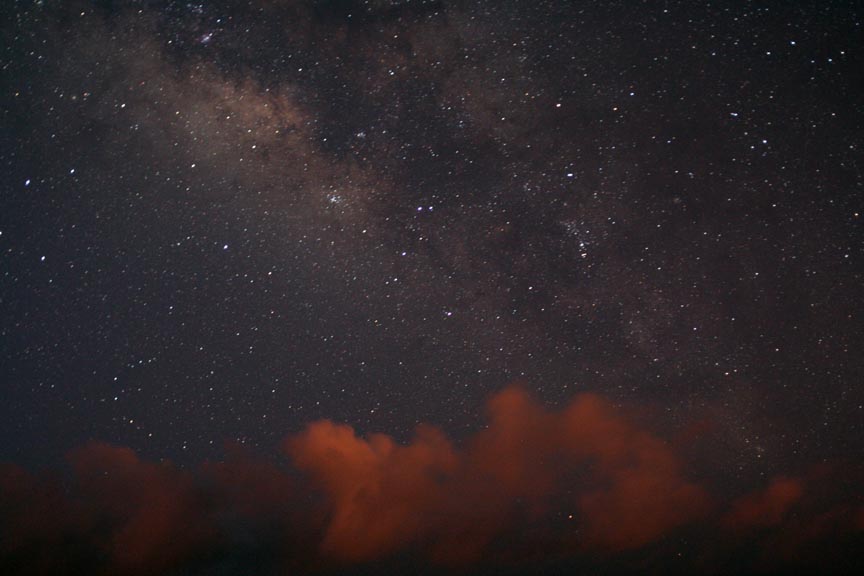 Doch im Süden konnte die Milchstraße bis zu einer Wolkenschicht knapp über dem Horizont ungestört verfolgt werden. Der dunkelste Wert der Zenithelligkeit wurde mit 21.2 mag/arcsec² gemessen.