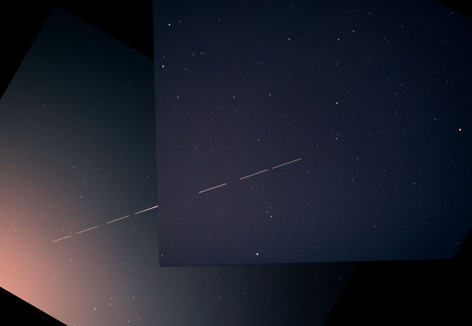 Im Rahmen dieser Tagung war in der Abenddämmerung die Beobachtung des Hubble-Weltraumteleskops als heller Lichtpunkt möglich. Mehrere 5 Sekunden belichtete Aufnahmen wurden überlagert, so dass der Satellit als Strichspur erkennbar ist.