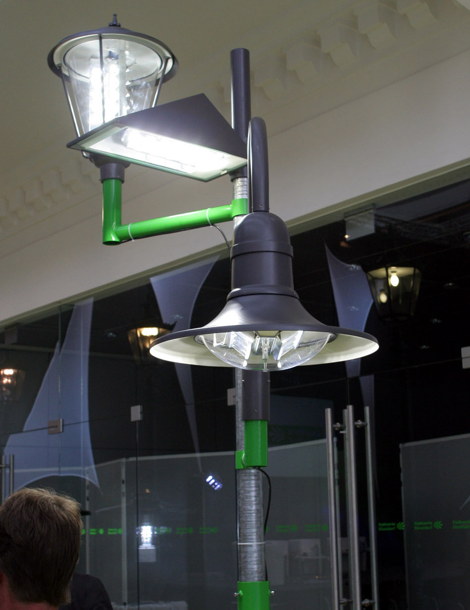 In einer Ausstellung wurden verschiedene Modifikationen konventioneller Leuchten durch LED-Einsätze gezeigt. |