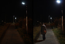 LED-Leuchte mit BewegungsmelderBei dieser Gelegenheit konnte an einer Teststrecke in Fulda eine LED-Leuchte mit Bewegungsmelder getestet werden. Der reduzierte Lichtlevel fällt kaum auf, da der benachbarte Parkplatz der Hochschule Fulda viel zu hell erleuchtet wird.