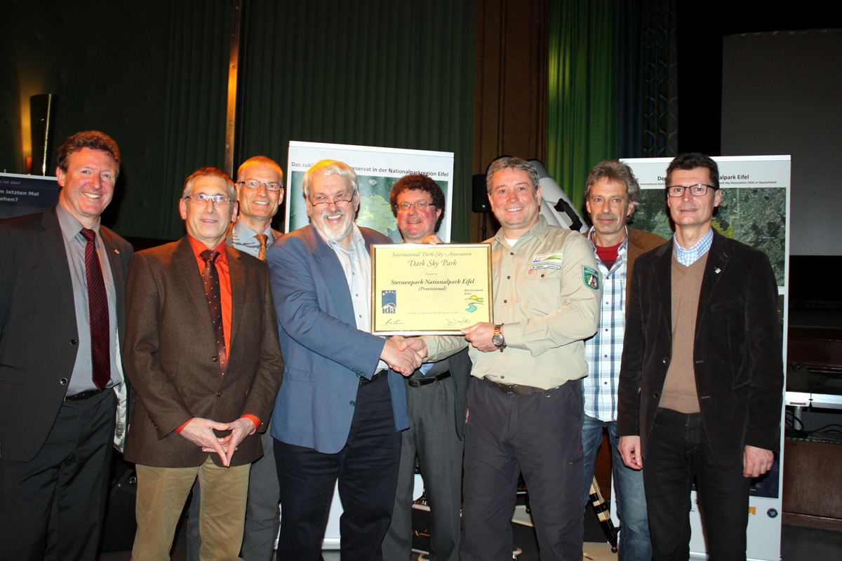 Fast gleichzeitig mit dem Westhavelland wurde von der IDA auch der Nationalpark Eifel vorläufig als International Dark Sky Park anerkannt. Das Projekt hat wesentlich Harald Bardenhagen aus Köln, Mitglied der VdS und der Fachgruppe Dark Sky voran gebracht und dabei auf die Kooperation mit Nationalpark, den Deutsch-Belgischen Naturpark Hohes Venn-Eifel, Vogelsang IP, den Kreis Euskirchen und die Kommunen Heimbach und Schleiden gebaut. Sobald einige Orte als Enklaven im Nationalpark ihre Beleuchtung so umgerüstet haben, dass sie kein Licht mehr nach oben abgeben, wird die endgültige Anerkennung als International Dark Sky Park angestrebt.