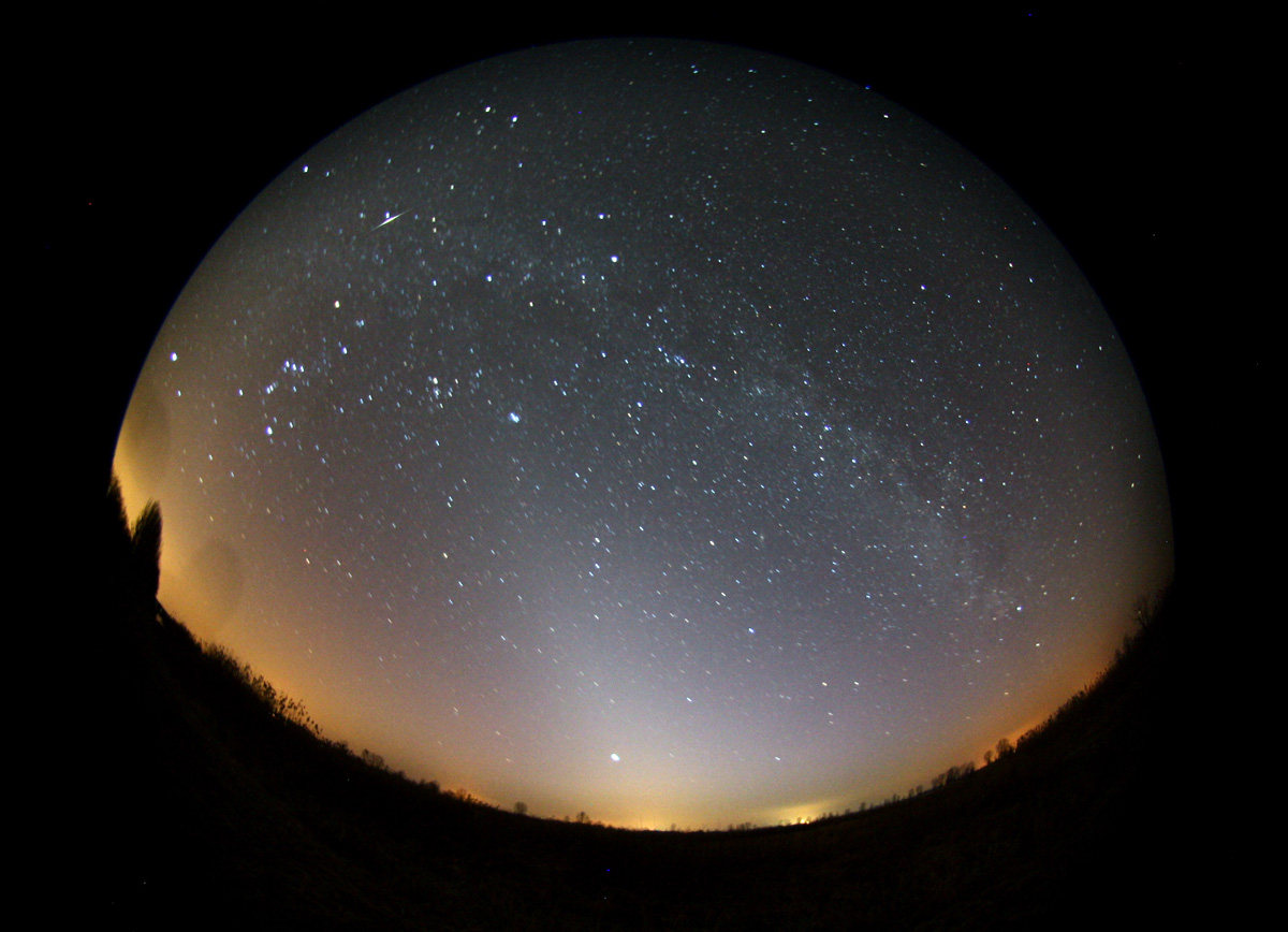 Zodiakallicht, Milchstraße und Iridium Flare über dem Westhavelland |